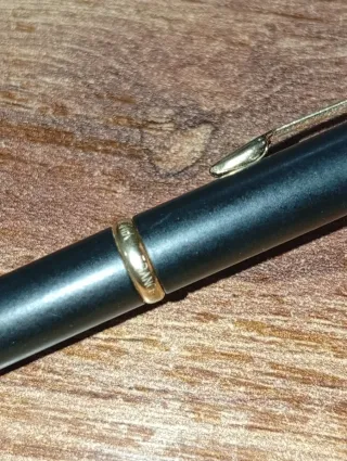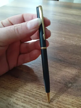 Penna stilografica Parker Insignia, modello France. - Finitura nera opaca. - Dettagli dorati sul cappuccio e sull'impugnatura. - Clip dorata con logo Parker.