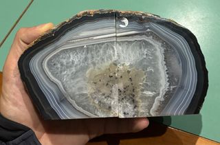 Eleganti fermalibri realizzati in agata naturale, perfetti per dare un tocco di stile alla tua libreria. - Pezzi unici con venature e colori naturali. - Base stabile per sostenere i libri.