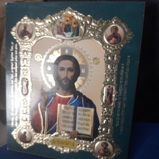 Bellissima icona sacra in stile bizantino, raffigurante Gesù Cristo.mis.16x18cm - Cornice decorata in metallo. - Dettagli dorati. - Immagine sacra. - Stile artistico tradizionale.