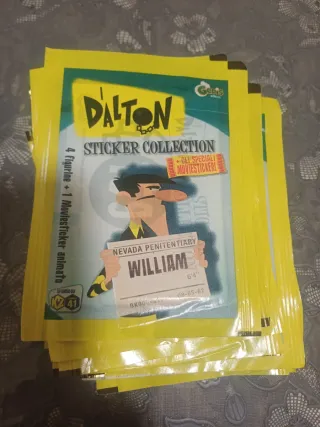 Lotto di 20 bustine nuove e sigillate della collezione di figurine I Dalton. - Ogni bustina contiene 4 figurine e 1 mini-sticker. - Personaggi: Jack, William, Joe, Averell.
