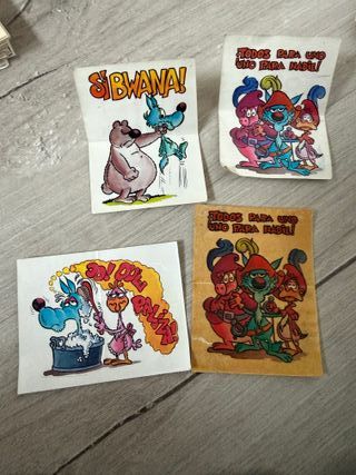 Lote de 4 cromos de Panrico della collezione Lobo Alberto o Lupo Alberto. Rari da trovare. Nessuno in vendita. - I 4 cromos per 30 euro. Singoli a 10 euro. - Spese di spedizione di 5 euro tramite MRW con consegna a mano. - Le foto sono la descrizione. - Parole chiave: Panrico, Bimbo, Bimbocao, Bollycao, Cropan, pastelitos, merienda, Phoskitos.