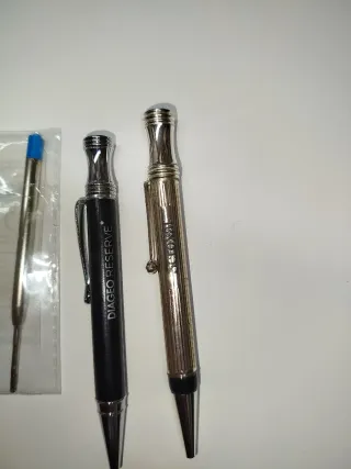 Set di due eleganti pennarelli metallici. Uno lacca in nero. Con sistema di estrazione della punta a mezzo giro diverso dal solito. Tipo di pennarelli, rari da vedere. Utilizzano ricambio tipo Parker, inoxcrom o compatibili, senza problemi di disponibilità. A 5 euro l'unità.