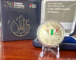 Moneta da 5 Euro in Argento Proof, edizione 2024, dedicata alla Guardia di Finanza. - Finitura Proof. - Anno di emissione 2024. - Tema: Guardia di Finanza.