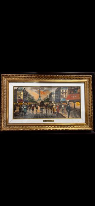 Quadro Autentico rappresentante Una Veduta su Parigi con Torre Eiffel sul fondo. Le case d'asta di quadri presentano quotazioni che variano dai 800 ai 1300 euro per quadri simili del pittore G.Cucciardi #quadro #dipinti #paesaggio #paris #citta #quadropaesaggio #dipintoparigi - Opera autentica. - Cornice dorata inclusa.