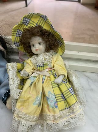 Deliziosa coppia di bambole , perfette per collezionisti. Testa mani e piedi in gesso credo - Abiti dettagliati in tessuto. - Espressione facciale dipinta a mano. - Capelli realistici. Misure N.1 bambola alt.38 cm N.2 bambola alt.20 cm Vendo in blocco a 10 euro