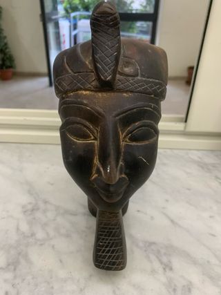 Set di 3 pezzi decorativi in legno, con un design vintage. - Scultura di figura umana pensierosa.26x30cm - Decorazione a forma di pesce.24x2cm - Posacenere esagonale.diametro8,5cm Piu Testa decorativa raffigurante un faraone egiziano. - Realizzata credo in pietra essendo il suo peso di kg 2,637 ha un altezza di 23 cm, - Dettagli intagliati sul copricapo e sul volto. - Elemento decorativo unico. Vendo tutto in blocco a 20 euro