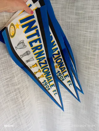 SIRACUSA. Vendo a 20 euro Gagliardetto del Football Club Internazionale Milano, fondato nel 1908. - Design a strisce nere e blu. - Stemmi e trofei celebrativi. - Cordino per appenderlo. - Collezionionismo gagliardetto.