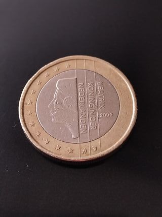 1 Euro 2000 Olanda (n.3220) coniata nei Paesi Bassi. - Raffigura la Regina Beatrix. - Anno di coniazione: 2000. - Design con stelle e profilo della Regina.