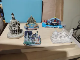 Set di miniature di famose città del mondo in ottime condizioni vendo dai 3 euro ai 6 euro dipende dal monumento e dalla grandezza chiedete pure - Miniatura di San Pietro, Roma. - Miniatura del Ponte di Rialto, Venezia. - Miniatura del Castello di Neuschwanstein. - Miniatura della Torre di Pisa.