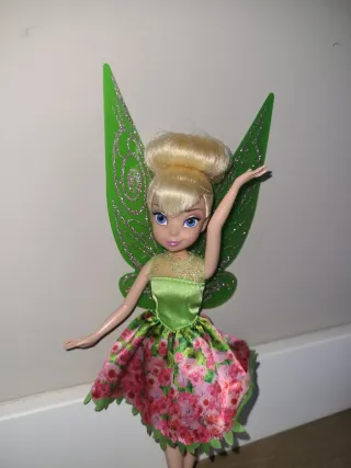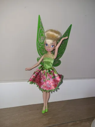 Bambola di Trilli, personaggio Disney. - Vestito verde e gonna con stampa floreale. - Ali verdi con glitter. - Scarpe abbinate.