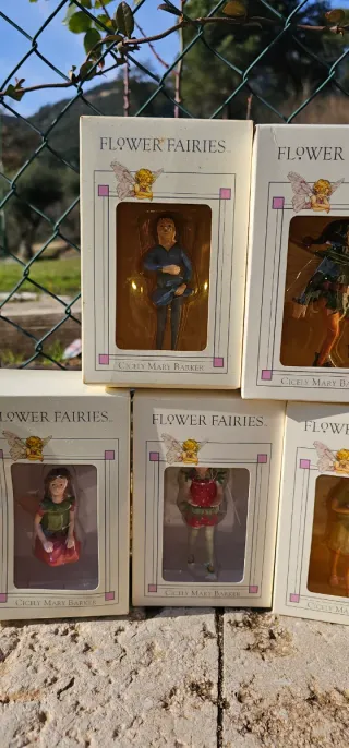 Collezione di 14 figure di fate della marca Flower Fairies, ciascuna presentata nella sua scatola originale. Figure dettagliate di fate. Include le scatole originali di ogni figura. Ideale per collezionisti.