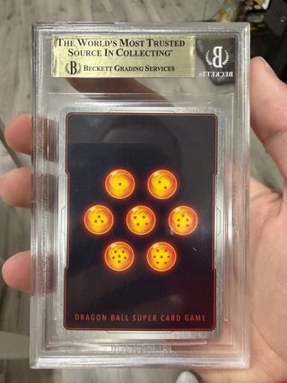 Carta di Dragon Ball Super, SS4 Bardock, Fighting Against Fate, con una valutazione Beckett di 9.5. - Grado: 9.5 Gem Mint - Centratura: 9 - Angoli: 10 - Bordi: 10 - Superficie: 9.5 - Anno: 2022 - Serie: Mythic Booster - Numero di carta: P261