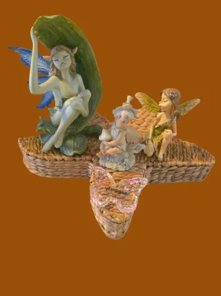 Set di figure decorative di folletti e fate, perfette per aggiungere un tocco magico alla tua casa. Include tre figure. Design dettagliato di folletti e fate. Ideale per appendere o esporre.
