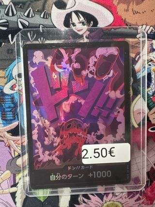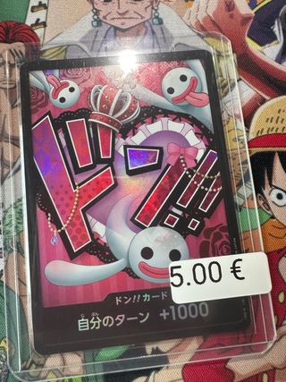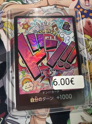 Carta Don!! Card dal gioco di carte collezionabili One Piece. - Effetto: +1000 al proprio turno. - Prezzo: 4.00€ foil condizioni in near mint piu acquisti fate piu scende il prezzo! per qualsiasi info chiedete in privato a vostra disposizione!