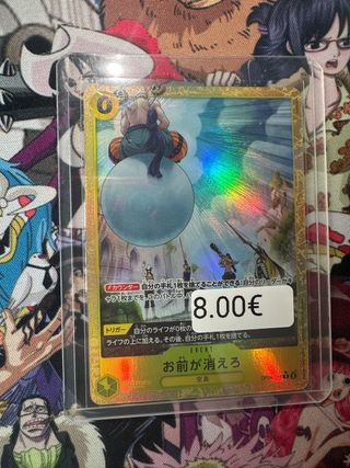 Carta Omae ga Kieru dall'evento Sora per il gioco di carte collezionabili One Piece. condizioni in near mint piu acquisti fate piu scende il prezzo! per qualsiasi info chiedete in privato a vostra disposizione!