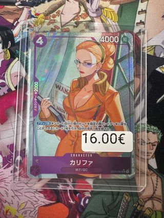 Carta del gioco di carte collezionabili One Piece TCG. - Personaggio: Califa - Codice carta: OP03-060 - Categoria: W7/GC - Costo: 4 - Potenza: 4000 - Contatore: +2000 condizioni in near mint piu acquisti fate piu scende il prezzo! per qualsiasi info chiedete in privato a vostra disposizione!