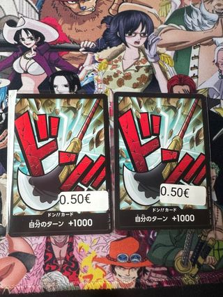 Carte Don!! Card per il gioco di carte collezionabili One Piece. 0.50 cent A CARTA. - Valore: 0.50€ - Effetto: +1000 al proprio turno. - Prodotto Bandai, Made in Japan. condizioni in near mint piu acquisti fate piu scende il prezzo! per qualsiasi info chiedete in privato a vostra disposizione!