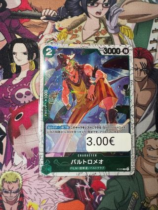 Carte per il gioco di carte collezionabili One Piece. - Personaggio: Bartolomeo - Serie: FILM / Supernova / Barto Club - Potenza: 3000 - Costo: 2 condizioni in near mint piu acquisti fate piu scende il prezzo! per qualsiasi info chiedete in privato a vostra disposizione!