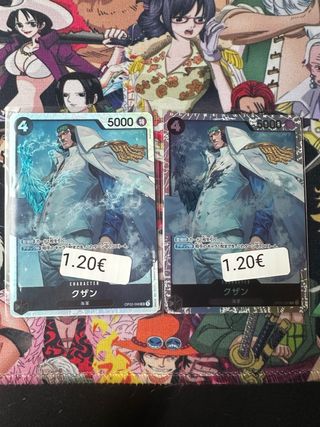 Carte del gioco di carte collezionabili One Piece. - Personaggio: Kuzan - Codice carta: OP02-096 - Tipo: Character - Costo: 4 - Potenza: 5000 - Mazzo: Marine condizioni in near mint piu acquisti fate piu scende il prezzo! per qualsiasi info chiedete in privato a vostra disposizione!