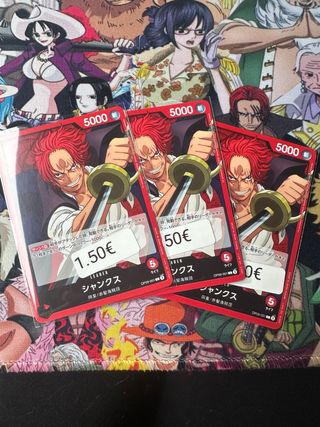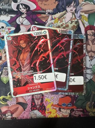 Carte Leader di Shanks dal gioco di carte collezionabili One Piece TCG. - Valore 5000. - Costo 5. - Codice carta: OP09-001. condizioni in near mint piu acquisti fate piu scende il prezzo! per qualsiasi info chiedete in privato a vostra disposizione!