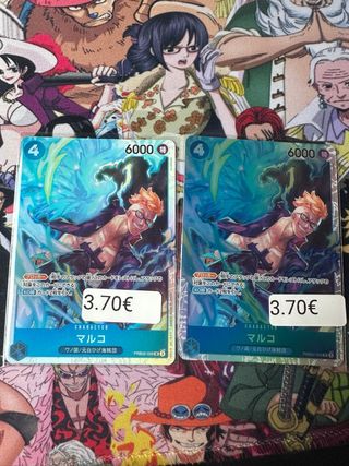 Carte del gioco di carte collezionabili One Piece TCG. - Personaggio: Marco - Codice carta: PRB02-008 - Potenza: 6000 - Costo: 4 - Effetto: Blocker (Quando l'attacco dell'avversario viene attivato, puoi mettere questa carta a riposo per renderla il bersaglio dell'attacco) / Pesca 2 carte KO. condizioni in near mint piu acquisti fate piu scende il prezzo! per qualsiasi info chiedete in privato a vostra disposizione!