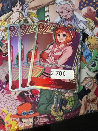 Carte del gioco di carte collezionabili One Piece. - Personaggio: Nami - Serie: Mugiwara no Ichimi - Codice carta: P-053 - Potenza: 1000 - Contatore: +2000 condizioni in near mint piu acquisti fate piu scende il prezzo! per qualsiasi info chiedete in privato a vostra disposizione!