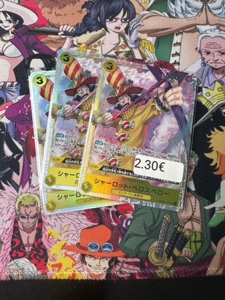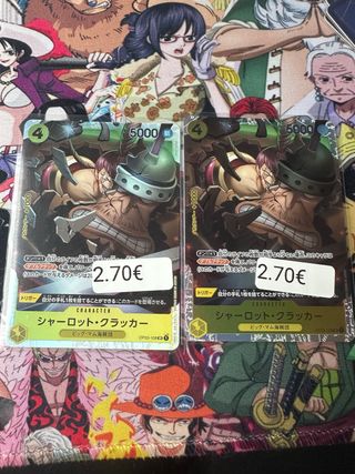 Carte del gioco di carte collezionabili One Piece TCG. - Personaggio: Charlotte Cracker. - Serie: OP03. - Equipaggio: Big Mom Pirates. condizioni in near mint piu acquisti fate piu scende il prezzo! per qualsiasi info chiedete in privato a vostra disposizione!