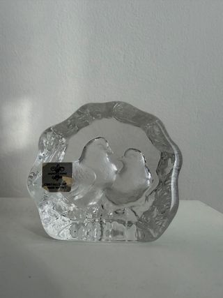 Fermacarte in cristallo Imperatore, un elegante pezzo d'arredo. - Realizzato in cristallo di alta qualità. - Design unico con due uccellini. - Made in Italy.