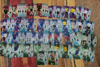 Conjunto di figurine di calcio Panini. Include figurine del Pallone d'Oro e della Champions. Alcuni sono in edizione limitata. Include figurine di giocatori come Oblak, Koundé e Courtois. Il lotto contiene 331 carte Adrenalyn 21/22 22/23 23/24, 284 di mundi cromo normali speciali, 38 della ultima Euro e 13 antiche come Fernando Torres 2004 e altre.