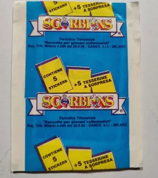 Bustina originale degli Sgorbions, Le Bande Degli. - Contiene 5 stickers. - Include +5 tesserine a sorpresa. - Collezione di figurine esagerate N.1. - Dagli USA, gli unici originali.