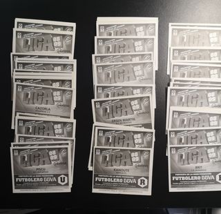 Collezione di figurine di calcio. Include figurine di giocatori come Hugo Mallo, Bigas, Arruabarrena, Lass e Amaya. Alcune figurine mostrano statistiche e dati dei giocatori. Non vendo figurine singole, inviare lista dettagliata della quantità e degli anni, prezzo in base allo stato.