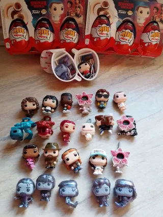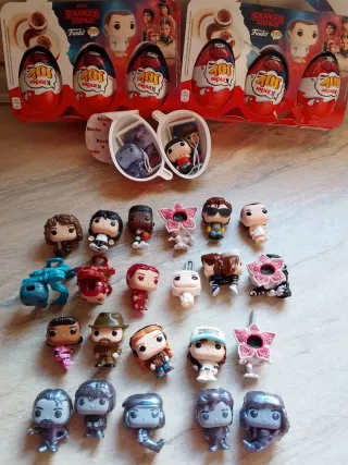 Collezione completa di figurine di Stranger Things da Kinder Sorpresa. Include vari personaggi della serie. - 24 figurine collezionabili. - Tema Stranger Things. - Prodotto Kinder Joy.