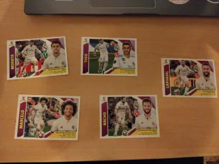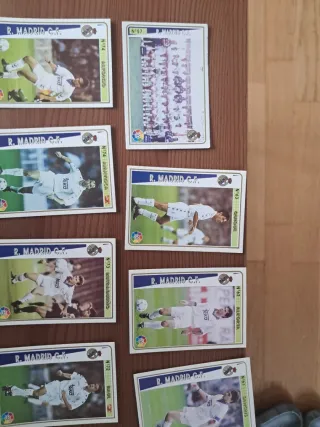Collezione di vecchie figurine di calcio del Real Madrid. Include giocatori come Raúl, Guti, Beckham, Casillas e Roberto Carlos. - Figurine di giocatori iconici. - Ideale per collezionisti. Prezzo negoziabile