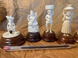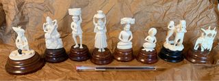 Set di 8 figurine scolpito a mano, ciascuno su una base di legno. 30€ ciascuna. Set 200€ - Figure di persone e animali. - Dettagli intricati in ogni pezzo. - Basi in legno scuro. - Ideale per collezionisti.