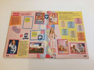 Album di figurine di Barbie della marca Panini. Contiene giochi, labirinti e puzzle. Non è completo, mancano molte figurine - Design colorato con illustrazioni di Barbie.