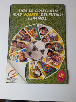 Vendo album di figurine della Liga spagnola stagione 1994-1995 di Ediciones Este. L'album è completo con tutte le figurine base delle squadre. Stato: Si conserva in buone condizioni generali per la sua età (vedere le foto di angoli e dorso). Contenuto: Include le formazioni complete della Primera División, con le stelle dell'epoca: Laudrup (Real Madrid), Romário/Stoichkov (Barça), Raúl (la sua prima figurina), Simeone (Atleti), ecc.