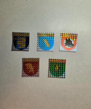 Set di 5 scudetti olografici Edis. Scudetti di: Inter, Napoli, Roma, Torino, Avellino Album Calciatori EDIS 1983-84 Nuovi, in perfette condizioni