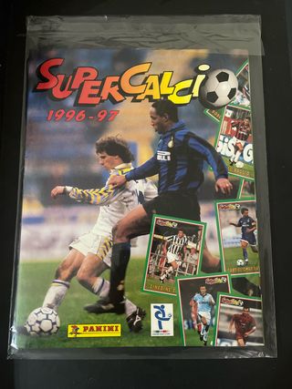 Album di figurine Super Calci 1996-97. - Include un set completo di figurine da attaccare. - Copertina con giocatori di calcio dell'epoca. - Logo Panini presente.L’album e’ un ex sigillato ,l’ho dovuto aprire poiche’ la sigillatura si era rotta.