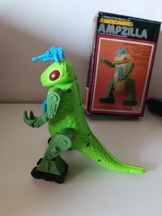 Giocattolo Ampzilla della linea Micronauti. Un robot verde con dettagli blu e rossi. C'è poco da dire, introvabile ovunque!!in perfetta forma nonostante i suoi 50anni.... scrivere pvt comunque se interessati,no scambi no sconti e preferisco consegnare a mano eventualmente.... - Design ispirato ai dinosauri. - Parti articolate per diverse pose.