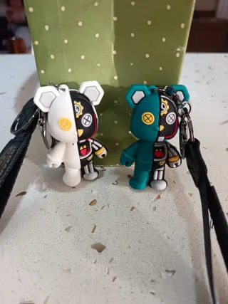 Portachiavi a forma di orso con design punk. 5 euro uno,2 a 9 euro - Design bicolore bianco e nero,verde e nero - Dettagli meccanici e punk. - Ideale come accessorio per borse o zaini.