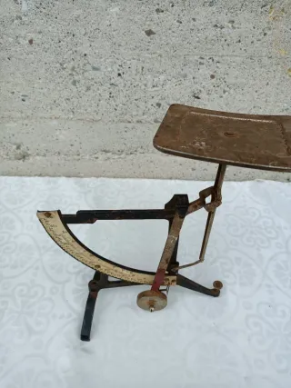 Bilancina postale in metallo, ideale per collezionismo o come pezzo d'arredo vintage. - Struttura in metallo verniciato nero e ruggine. - Piatto superiore in metallo. - Quadrante graduato in metallo con numeri neri.