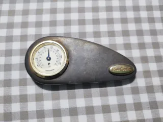 Termometro vintage con design ovale e finitura metallica. Presenta un quadrante circolare con scala graduata e logo Pierre Cardin. - Design ovale. - Finitura metallica. - Quadrante con scala graduata. - Logo Pierre Cardin.