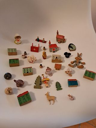 Lotto di 56 pezzi, i giocattoli sono in legno e materiale vario, in discrete condizioni, come da foto, dovute all' epoca.Alcuni pezzi richiedono riparazione.