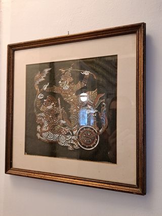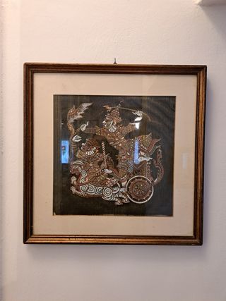 Batik raffigurante divinità indiana, incorniciato con vetro. Misure 40 x 40