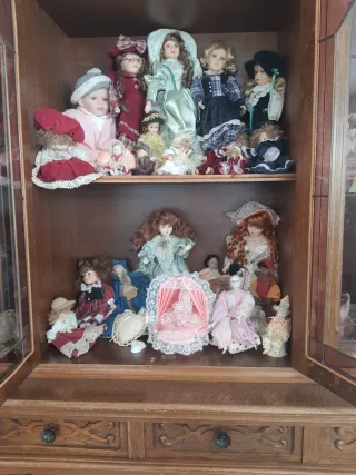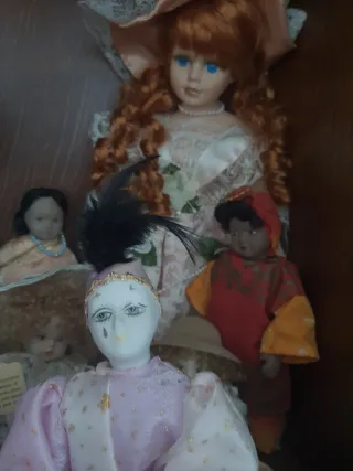 Collezione di bambole vintage, perfette per collezionisti o come elementi decorativi. - Diverse bambole con abiti dettagliati. - Alcune bambole presentano accessori come cappelli e cesti. - Ideali per esporre in vetrine o scaffali. Prezzo simbolico. Disponibile per lotti. Chiedi il prezzo di ognuna