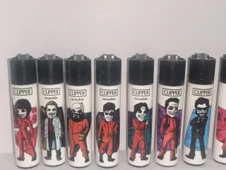 Set di accendini Clipper con diverse grafiche. - Accendini Clipper originali. - Grafiche assortite e colorate. - Ideali per collezionisti o uso quotidiano.