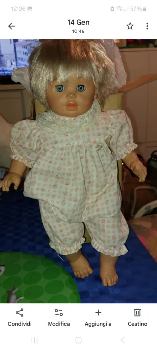 Bambola Fiba originale degli anni '90. - Indossa un pigiamino rosa a pois bianchi con fragoline originale della bambola. Ha il suo vano batterie,ma la bambola non è stata testata. Le condizioni sono rapportate ai suoi anni