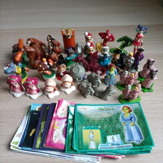 Vendo la collezione completa "Shrek", uscita nel 2002 all'interno delle merendine della Mulino Bianco. Il lotto è composto da tutti i 16 personaggi originali (nell'ordine delle foto): La Strega | Il Lupo | I 3 Porcellini | Il Drago (con cartina di montaggio) | Fiona Orchessa | Shrek | Ciuchino | Fiona | Thelonuis | Lord Farquaad | Robin Hood | Principessa Gonna Viola | Principessa Gonna Gialla | Lo Specchio Più il castello da montare. I personaggi sono conservati con cura, alcuni ancora sigillati. Vendita SOLO in blocco! [Il prezzo è negoziabile! Sono disponibile a offerte ragionevoli!] Per domand o per altre foto scrivetemi😊