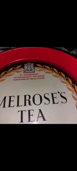 Vassoio vintage di Melrose's Tea, un pezzo da collezione con un design classico,è in perfette condizioni - Presenta la scritta Famous since 1812. - Include lo stemma By Appointment to Her Majesty The Queen Purveyors of Tea & Coffee che comprova che è stato prodotto da una fabbrica che lavora per la casa reale inglese