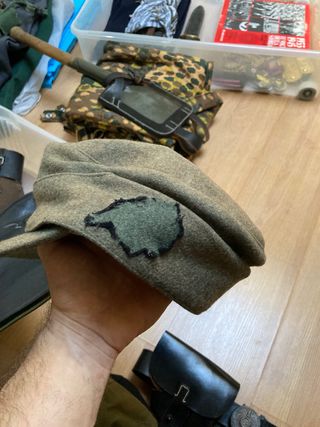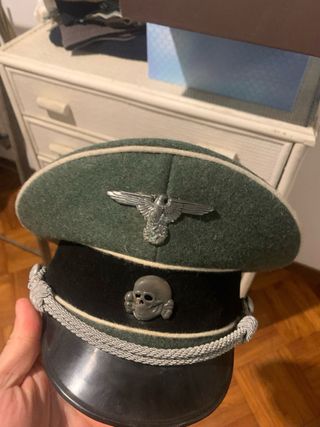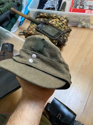 M43 waffen ss feldgrau jager, non garantisco originalità perché mai fatto visionare ad esperti, segni di usura ed ombra cuciture indicano un totenkopf sul fronte e uno jager sul lato